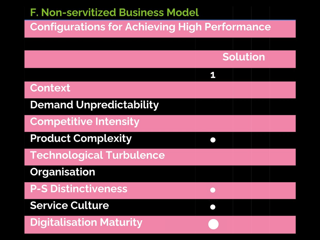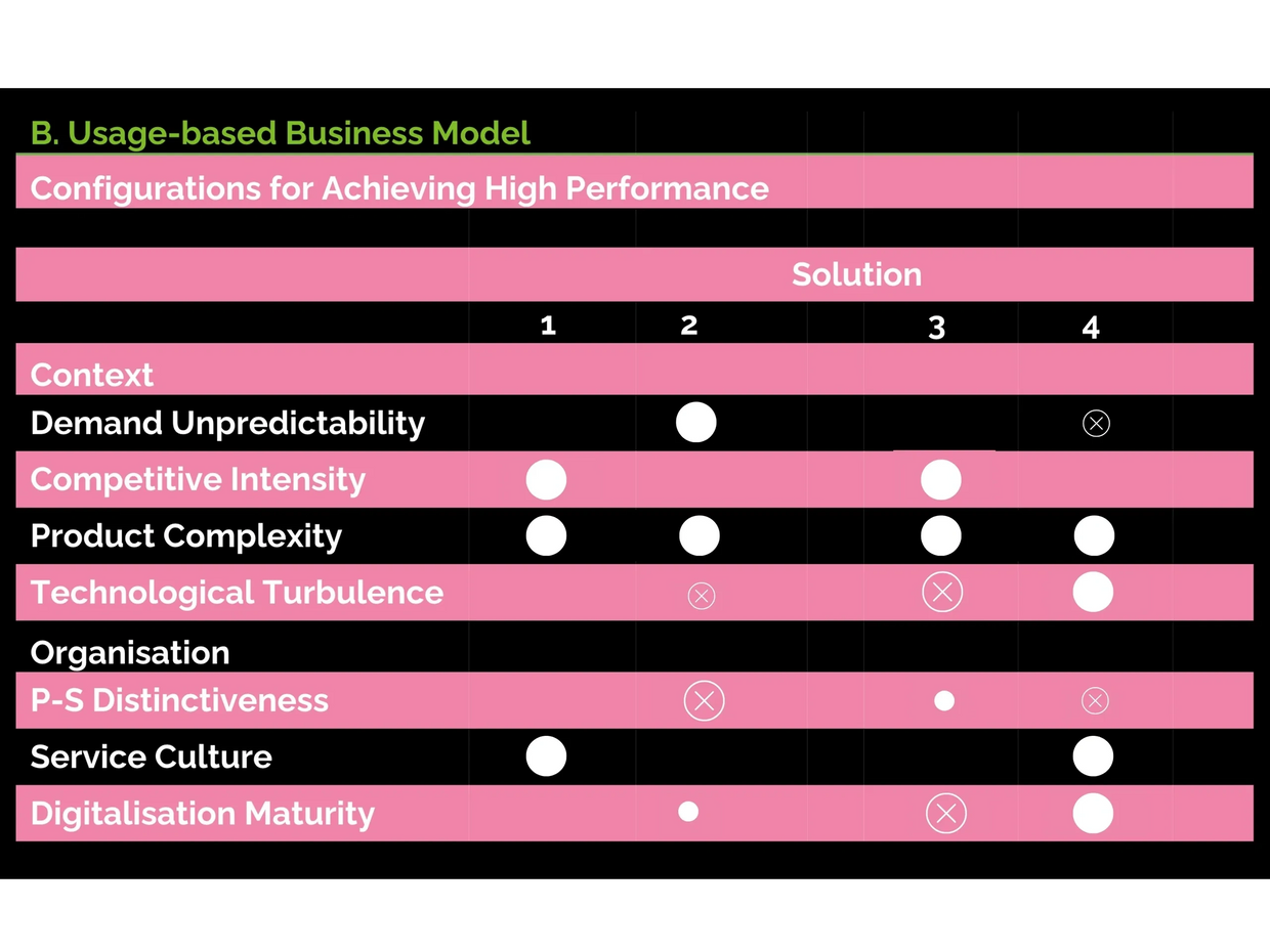 The high performance of SMEs that have adopted a servitized approach but have not transitioned to a digitally enabled business model is associated with two significantly distinct configurations.