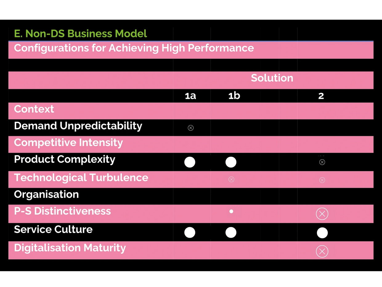 In this case, the configuration suggests that these SMEs require a separate service unit to achieve strong performance. Additionally, they either need to establish a service culture within the organisation or have a digitally mature setup to effectively compete in the market.